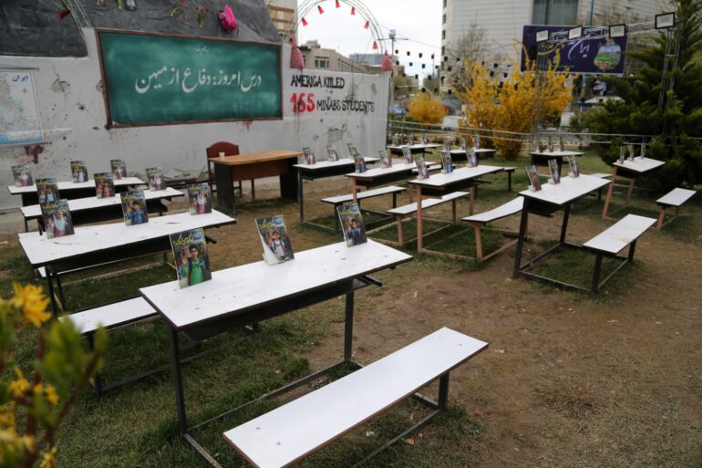 Minab’daki kız öğrenci okuluna yönelik saldırıda yaşamını yitiren 175 kişi, saldırıdan bir ay sonra Tahran’da kurulan temsili sınıf ve anma etkinliğiyle anıldı.