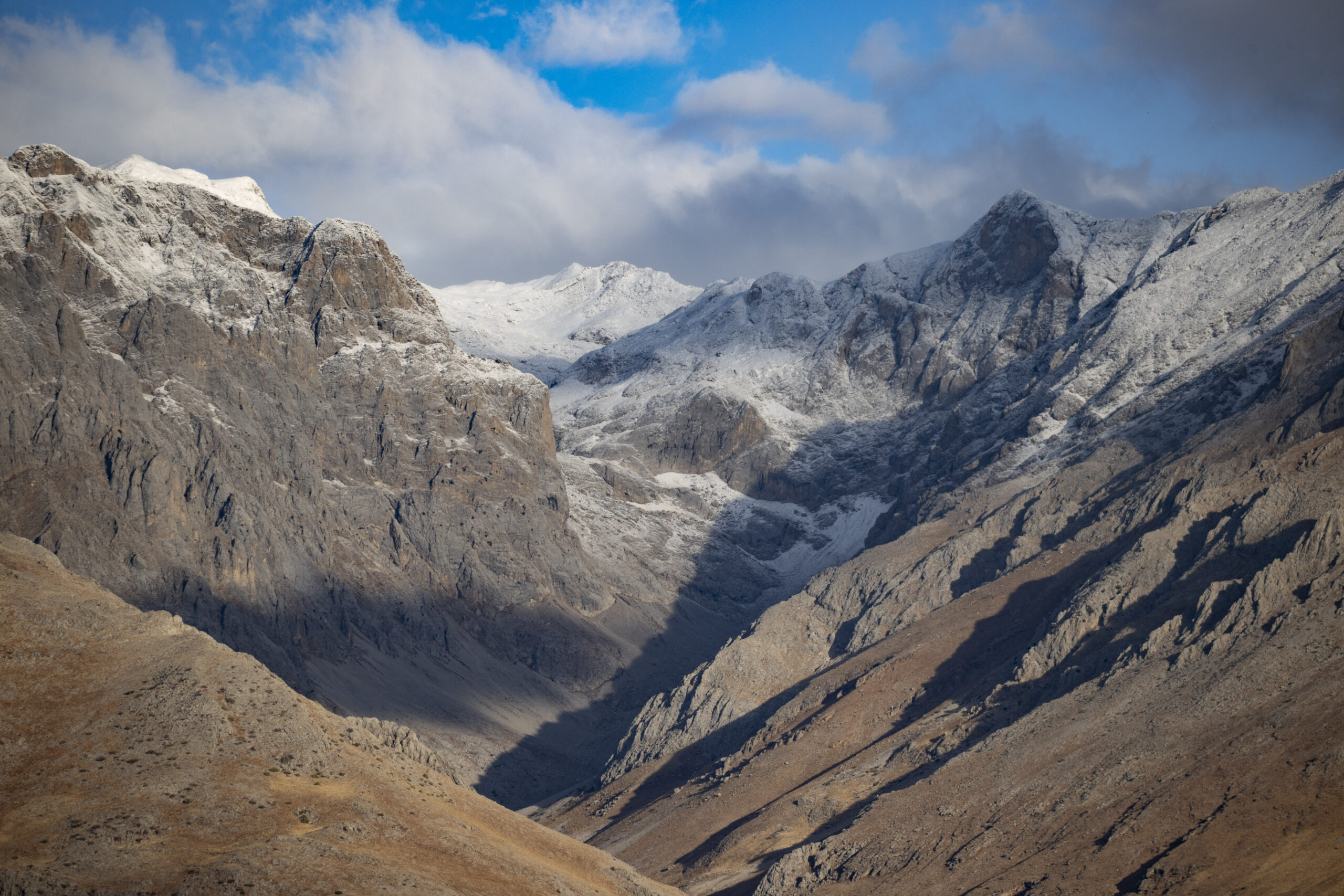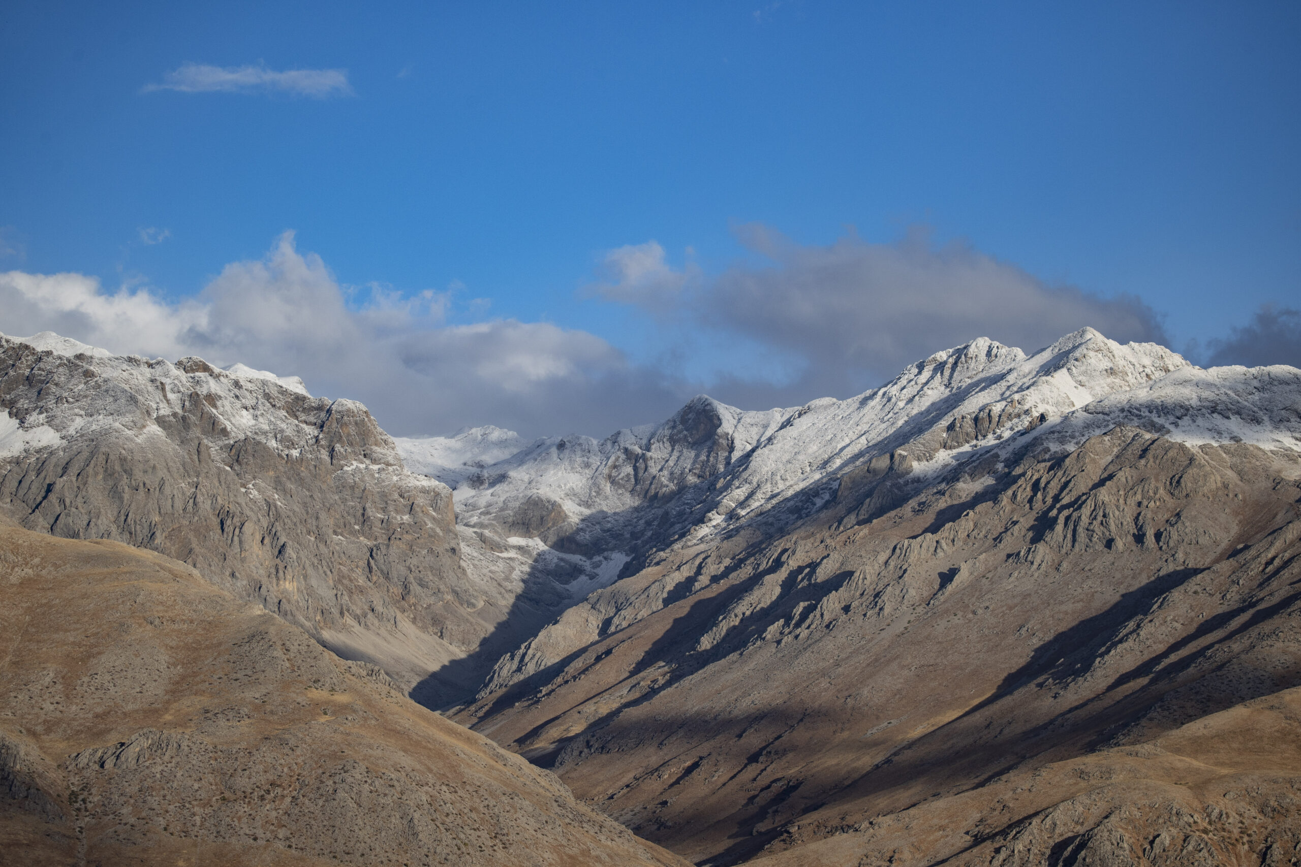 Dersim’in Ovacık ilçesinde etkili olan kar yağışı nedeniyle Munzur Dağları’nın zirveleri beyaz örtüyle kaplandı.