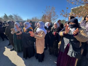 Diğre grupların gelmesiyle buradan Kamışlo sınırına yürüyüş düzenlenecekti. Ancak polis engeline takılan grup ilçe merkezine doğru yürüme kararı aldı.
