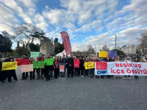 CHP Beşiktaş İlçe Başkanı Mehmet Arslan eylemde konuşma gerçekleştirdi.