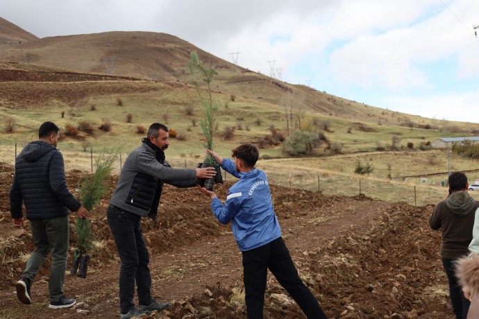 Katılımcılar, hem Rojin Kabaiş’in anısını yaşatmak hem de bölgedeki ekolojik tahribata karşı kolektif bir adım atmak amacıyla fidan dikiminde yer aldı.