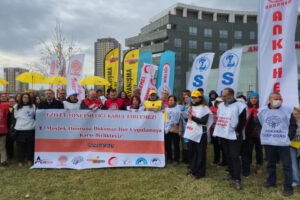 Son yıllarda sağlık çalışanlarının mutlu olamadığı, işine yabancılaştığı, tükendiği, halkın da iyi sağlık hizmeti alamadığı bir düzenin yaratıldığını kaydeden Babur, “Verdiğiniz sözlerin birini bile tutmadınız. Bizi de bu düzenin parçası haline getirmek için baskı ve cezalarınızla saldırdınız. Ancak biz kendimize ve hastalarımıza verdiğimiz sözle, mesleğimizin onurunu korumak için, sağlığa ve mesleğimize yaptığınız bu saldırılara karşı bugün buradayız” diye konuştu. Açıklama, “Baskı zulüm, kölelik istemiyoruz” sloganı ile son buldu.