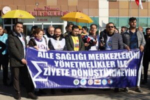 Tabip Odası, Sağlık ve Sosyal Hizmet Emekçileri Sendikası (SES), Genel Sağlık-İş, Hekim Birliği Sendikası ve Aile Hekimleri Dernekleri Federasyonu (AHEF), “eziyet yönetmeliği” olarak tanımladıkları “Sağlık Bakanlığı’nın Aile Hekimliği Sözleşme ve Ödeme Yönetmeliği’ne” getirdiği ağır çalışma koşullarının düzeltilmesi istemiyle birçok ilde açıklama yaptı. Sağlıkçılar açıklamalarında şu taleplerini sıraladı: