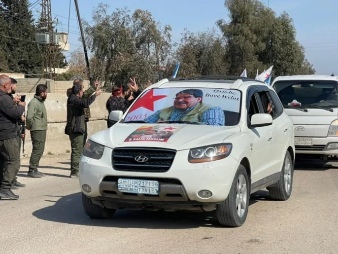 Konvoy, Kamışlo’un doğu girişindeki Nimetli kontrol noktasında yüzlerce bölge sakini, sivil kurum temsilcileri ve siyasi parti üyeleri tarafından karşılandı. Karşılamada Salih Müslim’in fotoğrafları ile Şehit Aileleri Meclisi ve PYD bayrakları taşındı.