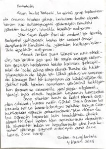 Demirtaş’ın X hesabından paylaşılan mektubunda şu ifadeler yer aldı: “Ancak herkes şunu bilmeli ve emin olmalıdır; hep birlikte yepyeni bir sayfa açmaya çalışırken geçmişin hatalarına takılıp kalırsak, geleceğimizi de ipotek altına almış oluruz. Benim de hiçbir siyasetçinin de böyle bir lüksü yoktur. Bu çerçevede kimseye özel bir kırgınlığım da küskünlüğüm de yoktur. Halk bizden sorunların çözümünü bekliyor. Feraset ve cesaretle yeni şeyler söylemek, yeniyi inşa etmek hepimizin boynunun borcudur.