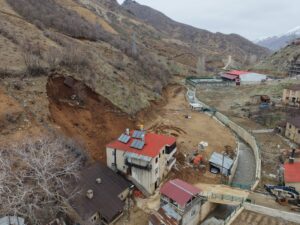 Bölgede sağanak sonrası ilçeye bağlı Karşıyaka Mahallesi’nde gece heyelan oluştu.