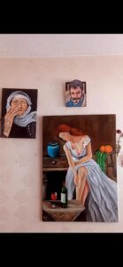 Şu an düzenli bir işte çalışmıyorum, ancak bazen kadınlara yönelik bir kooperatifte karton bardak ve şampuan üretiminde çalışıyorum. Ayrıca portre çizimi siparişleri alıyorum ve bazen çocuklara özel dersler veriyorum. Boyalar çok pahalı, özellikle de yağlı boya çalıştığım için. Bu yüzden çoğu zaman resim yapmayı bırakmak zorunda kalıyorum çünkü malzemeleri satın alamıyorum. Yine de bazı resimlerim satılıyor.