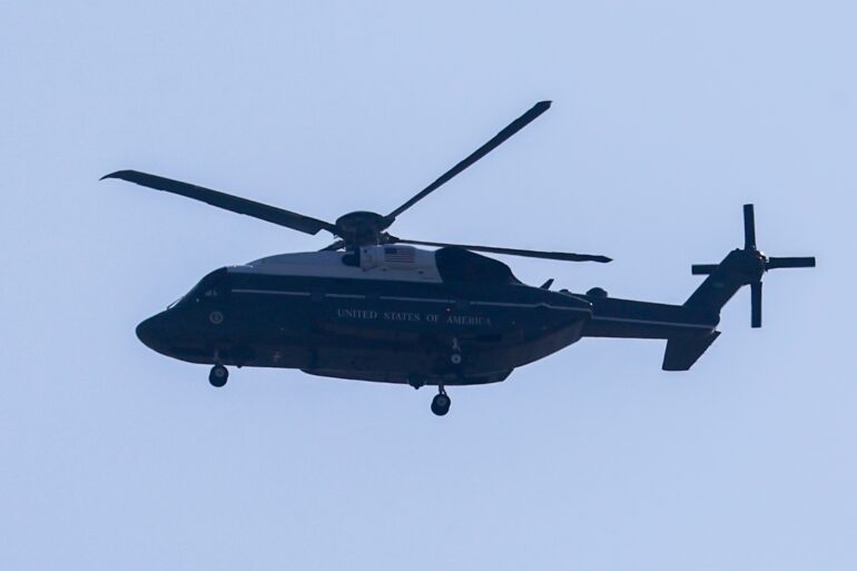 Trump’ın gelişi sırasında şehir merkezide askeri bir helikopter görüntülendi.