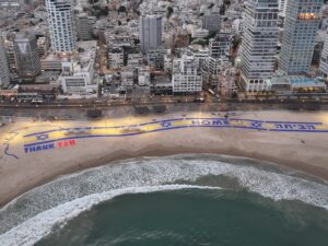 “Esir Aileleri Aktivistleri” ile “Silah Arkadaşları” adlı grupların öncülüğünde hazırlanan ve üç futbol sahası uzunluğunda alana yayılan büyük çaplı enstalasyon, ABD Başkanı Donald Trump’a teşekkür mesajı taşırken, serbest bırakılanların dönüş yolunda helikopterlerden görebilmesi amacıyla tasarlandı.