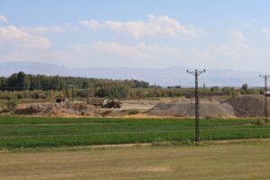 Kum ocağı faaliyetlerinin yoğunlaştığı Çelebibağ Mahallesi’nde dere yatağı boyunca iş makineleri aralıksız çalışıyor. Kamyonlarla taşınan kum ve çakıl nedeniyle dere yatağı değiştirilirken, köylerdeki su kanalları kuruma tehlikesiyle karşı karşıya kaldı. Bölgede toprak çökmesi ve heyelan riski artarken, köylüler hem su kaynaklarını hem de hayvancılık alanlarını kaybetmekten endişeli.