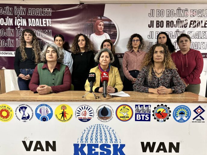 İlk andan itibaren Valiliğin, kolluk güçlerinin intihar algısı üzerinden hareket ettiği, etkin soruşturma yürütmediği, arama yapmadığı ve bundan kaynaklı 18 gün sonra ulaşılan Rojin ile ilgili açıklama yapmak üzere bugün buraya geldik. Rojin’in bedeninde iki farklı erkek DNA’sı tespit edilmesine rağmen, bu bulgular ‘ölüm sonrası bulaşma’ gibi akıl dışı açıklamalarla geçiştiriliyor. Rojin’in ailesi, arkadaşları, sevdiklerini kaybetmeleri yetmiyormuş gibi bir de ‘intihar’ ya da ‘kaza’ varsayımlarını dinlemek, tüm bu hukuksuzluğa tanık olmak ve şüpheli ölüm gibi müphem bir ayrıma karşı söz söylemek zorunda bırakılıyor, kurumsal şeffaflık ve hesap verebilirliğin olmadığı bu düzende etkin bir soruşturma yürütülerek gerçeğin açığa çıkması için mücadele ediyor.